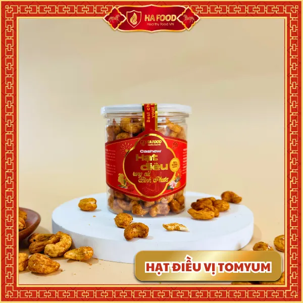 Hạt điều vị Tomyum Hafood là sự kết hợp độc đáo giữa vị cay nồng đậm đà của ẩm thực Thái Lan và hương béo giòn tự nhiên của hạt điều Việt. Mỗi hạt là một “bản giao hưởng vị giác” – mang lại trải nghiệm mới mẻ, thích hợp cho người trẻ năng động và những ai yêu thích hương vị quốc tế.