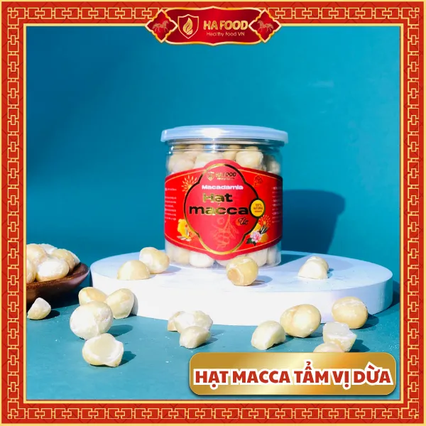 Macca tẩm vị dừa Hafood – sự kết hợp tinh tế giữa vị béo bùi và hương dừa tự nhiên. Mỗi hạt macca được chọn lọc kỹ, tẩm phủ vị dừa nhẹ nhàng, tạo cảm giác ngọt thanh, dễ ăn và bổ dưỡng. Giàu chất béo không bão hòa đơn, giúp bảo vệ tim mạch và tăng cường năng lượng. Là món ăn vặt sang trọng, bổ dưỡng và món quà tinh tế trong set quà Tết Hafood 2026 – biểu trưng cho sự sum vầy và ngọt ngào đầu năm mới.