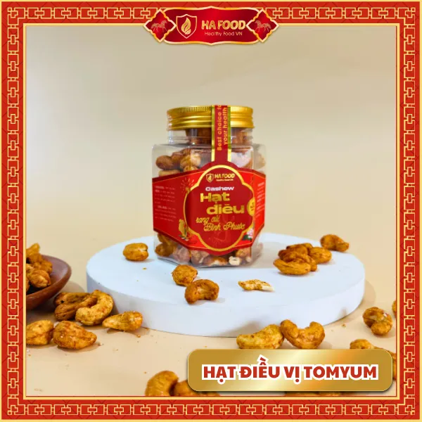 Hạt điều vị Tomyum Hafood là sự kết hợp độc đáo giữa vị cay nồng đậm đà của ẩm thực Thái Lan và hương béo giòn tự nhiên của hạt điều Việt. Mỗi hạt là một “bản giao hưởng vị giác” – mang lại trải nghiệm mới mẻ, thích hợp cho người trẻ năng động và những ai yêu thích hương vị quốc tế.