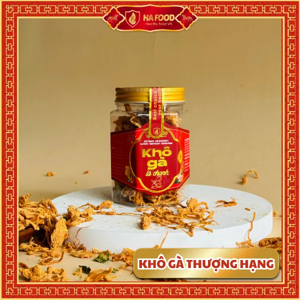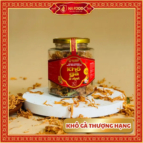 Khô gà lá chanh Hafood – hương vị truyền thống hòa quyện hiện đại. Thịt gà được sấy mềm, thấm đều gia vị cay nhẹ và thơm dịu của lá chanh.