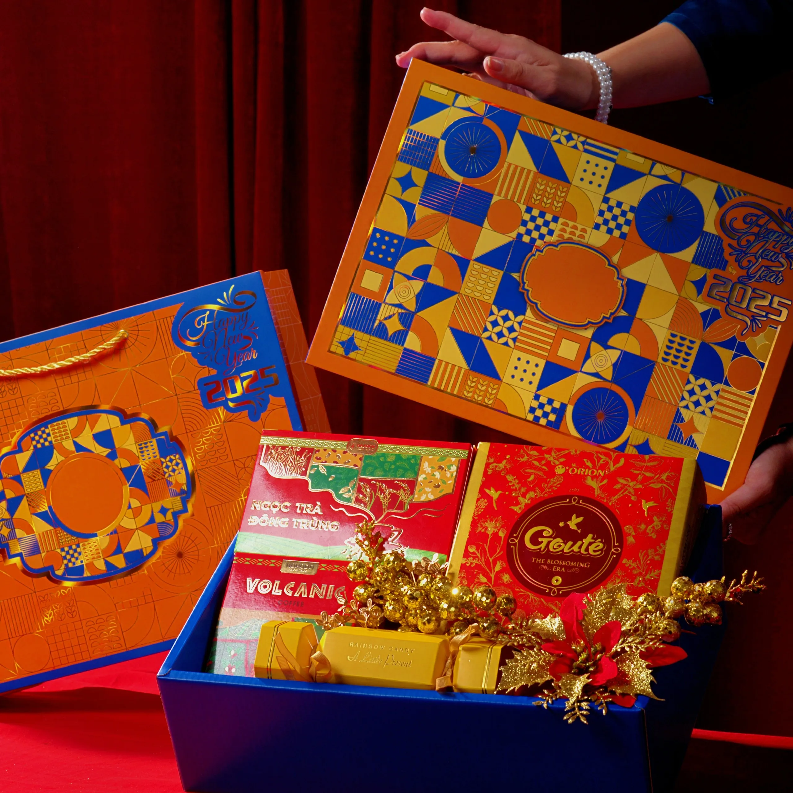 Các sản phẩm trong hộp quà đều chính hãng và có nhãn đầy đủ.